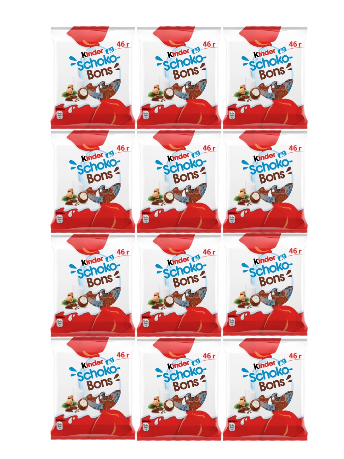 Купить Конфеты Kinder Schoko-Bons (Choco-Bons) с молочно-ореховой начинкой, 46 г, 12 шт., пластиковый пакет