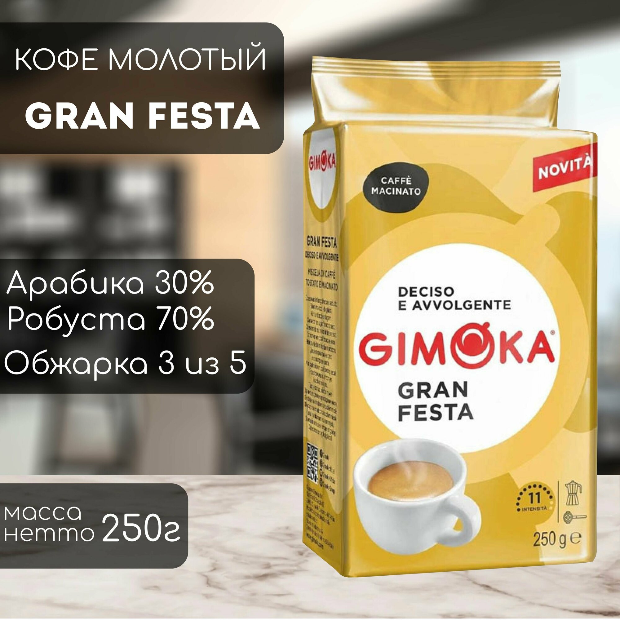 Кофе молотый Gimoka Gran Festa, 250 г, вакуумная упаковка интересное: