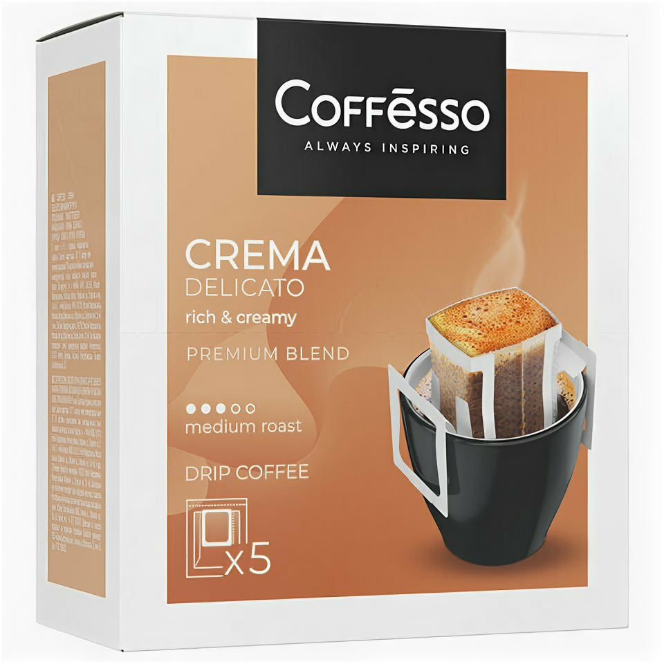 Купить Кофе в дрип-пакетах COFFESSO "Crema Delicato" 5 порций по 9 г, 102312