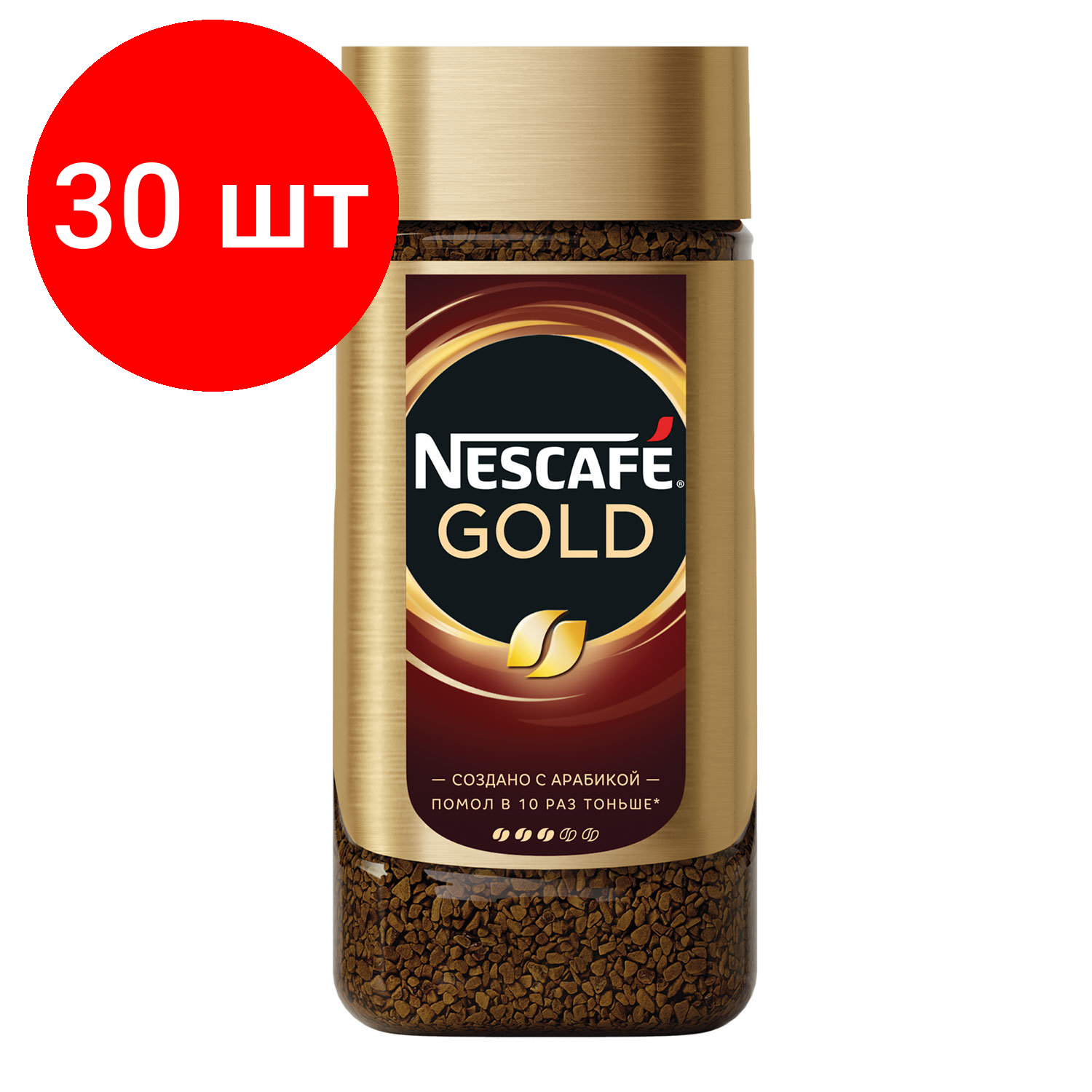 Комплект 30 шт, Кофе молотый в растворимом NESCAFE (Нескафе) "Gold", сублимированный, 95 г, стеклянная банка, 04813, 12326188