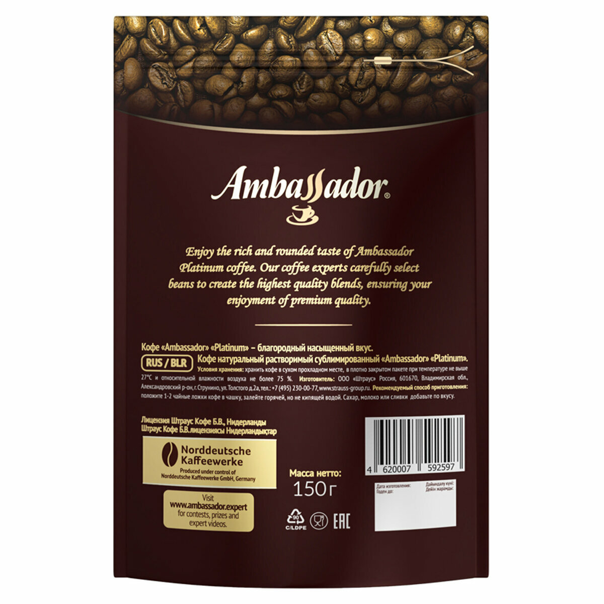 Кофе растворимый AMBASSADOR "Platinum", сублимированный, 150 г, вакуумная упаковка В комплекте: 1шт.
