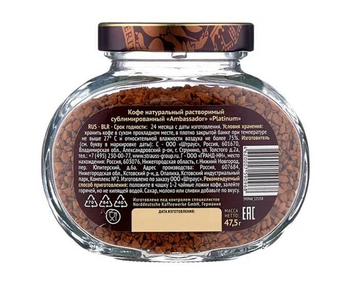 Растворимый кофе сублимированный Амбассадор Platinum, 47,5 г