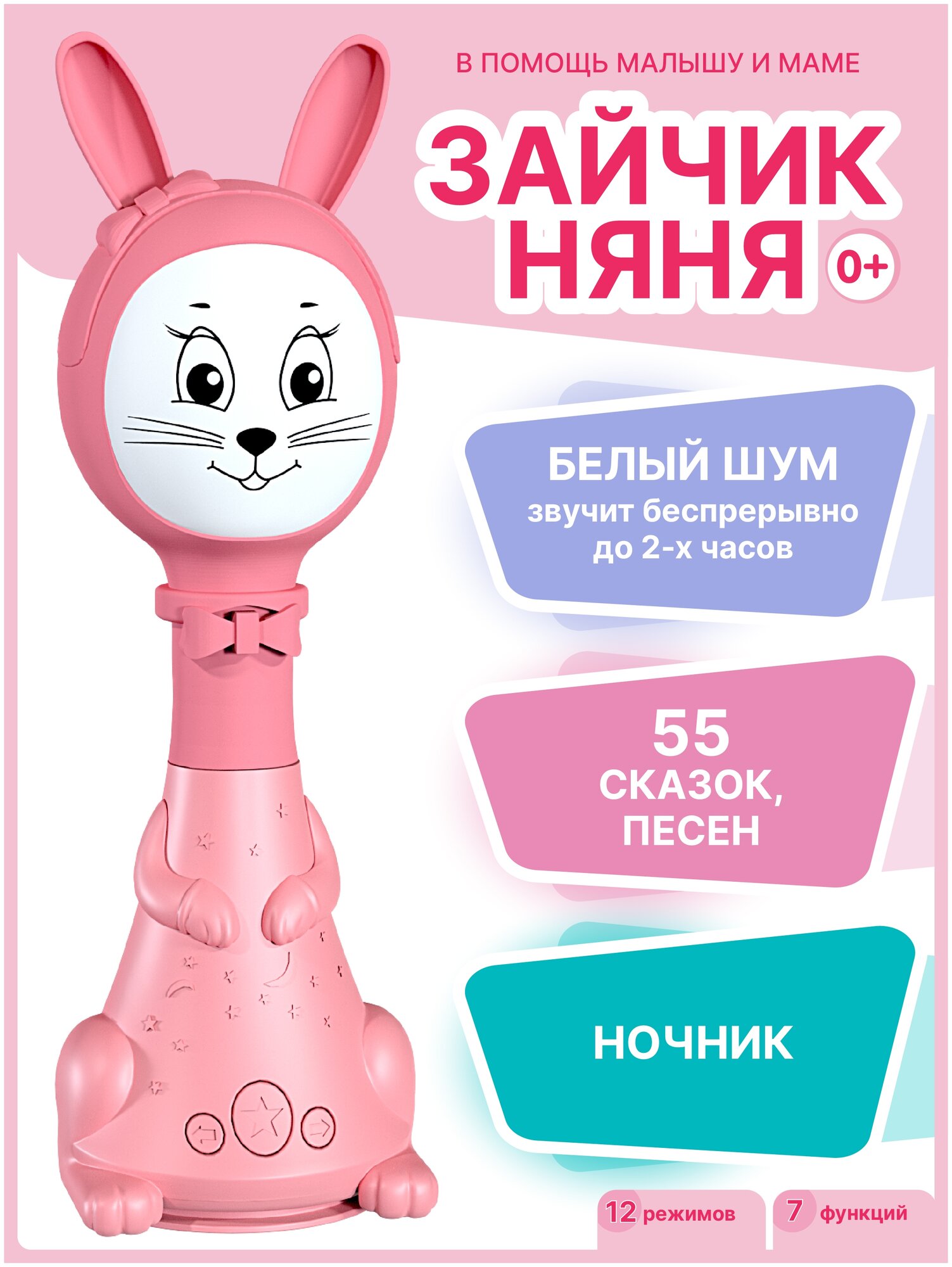 Купить Интерактивный Музыкальный Умный Зайка Няня Белый шум и ночник Розовый