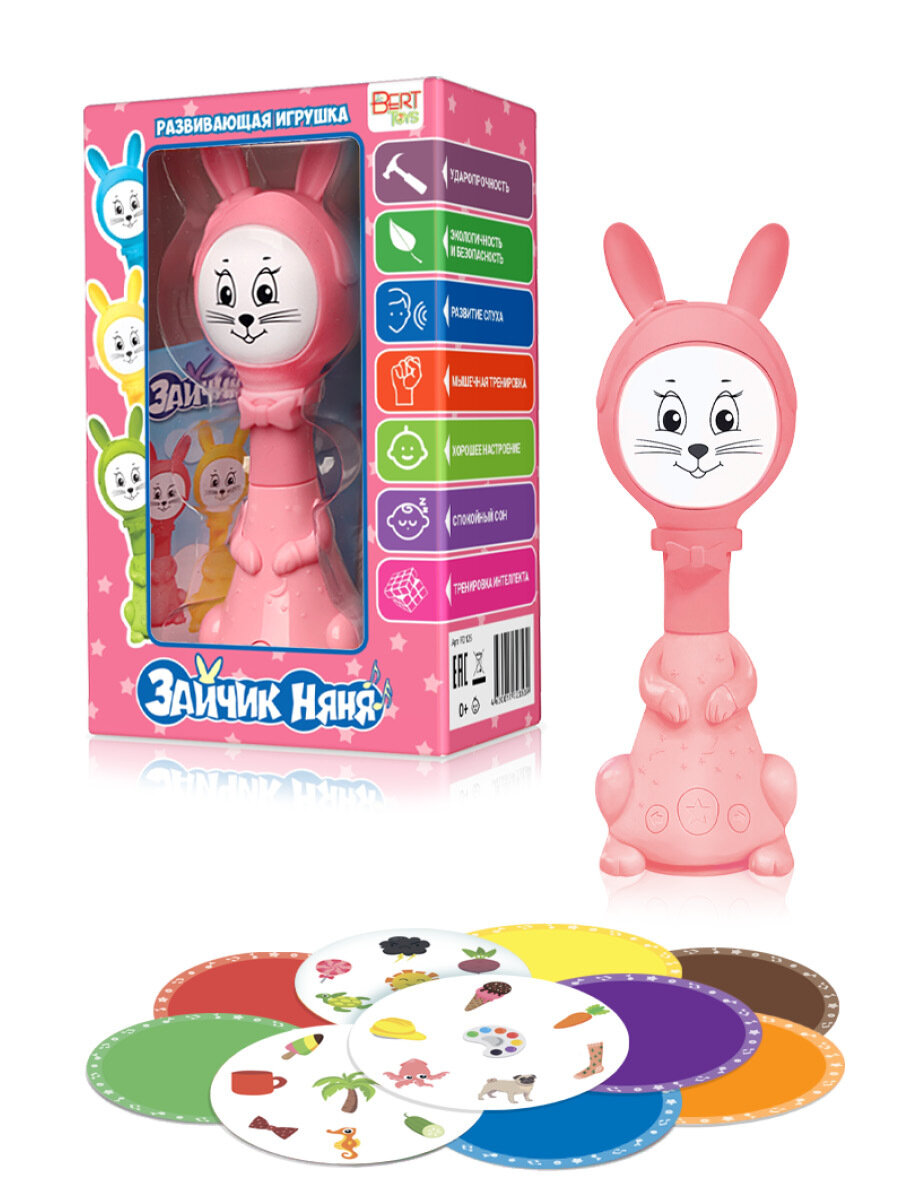 Развивающая игрушка BertToys Зайчик Няня (12 режимов), розовый