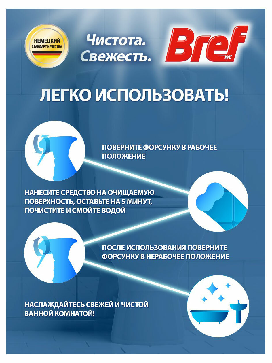 Ниже Вы можете прочитать отзывы на Средство для ванной Bref Total Анти-налет Лимонная свежесть, 500 мл, ознакомится с подробными характеристиками, посмотреть интересные обзоры и фотографии на Средство для ванной Bref Total Анти-налет Лимонная свежесть, 500 мл.