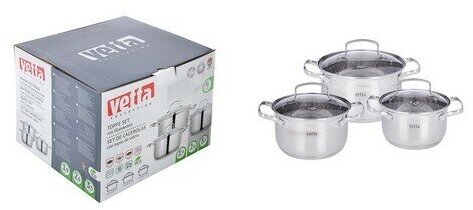 Купить Набор кастрюль Vetta Берн 6 предметов (1,9л+2,6л+3,5л) индукция (822-125)