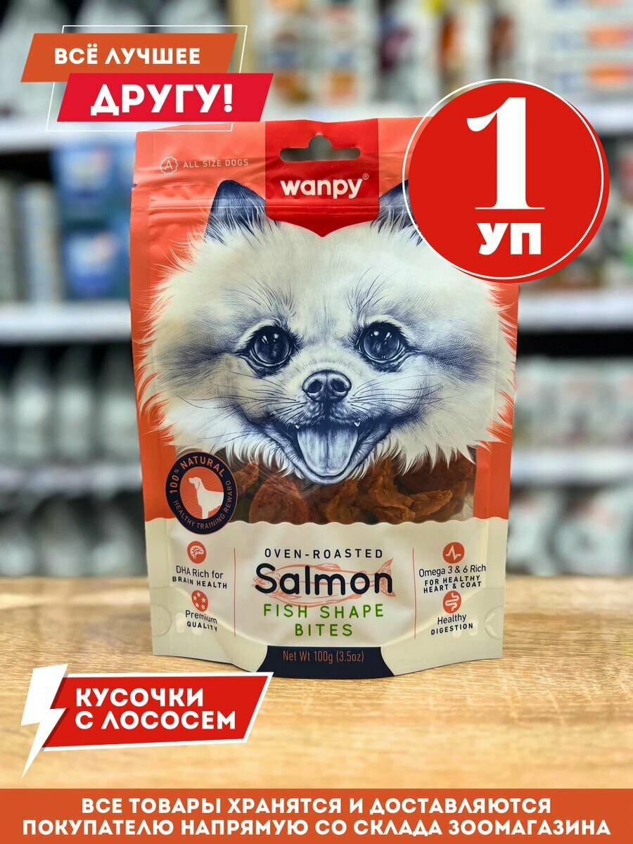 Лакомства для собак Wanpy / Ванпи Дог кусочки из нежного лосося в форме рыбок 100г / снеки для собак / жевательные косточки / лакомство для животных