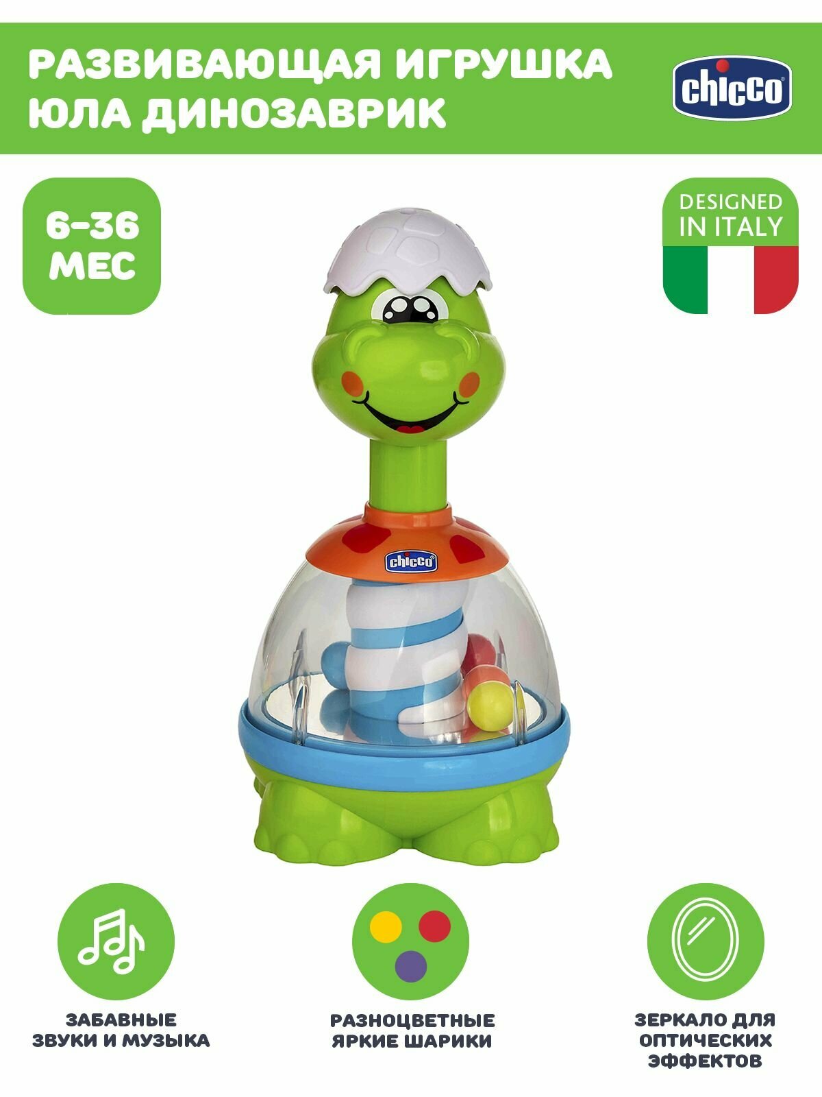 Развивающая игрушка Chicco 00009711000000 Юла Spin-Dino 6м+ интересное: