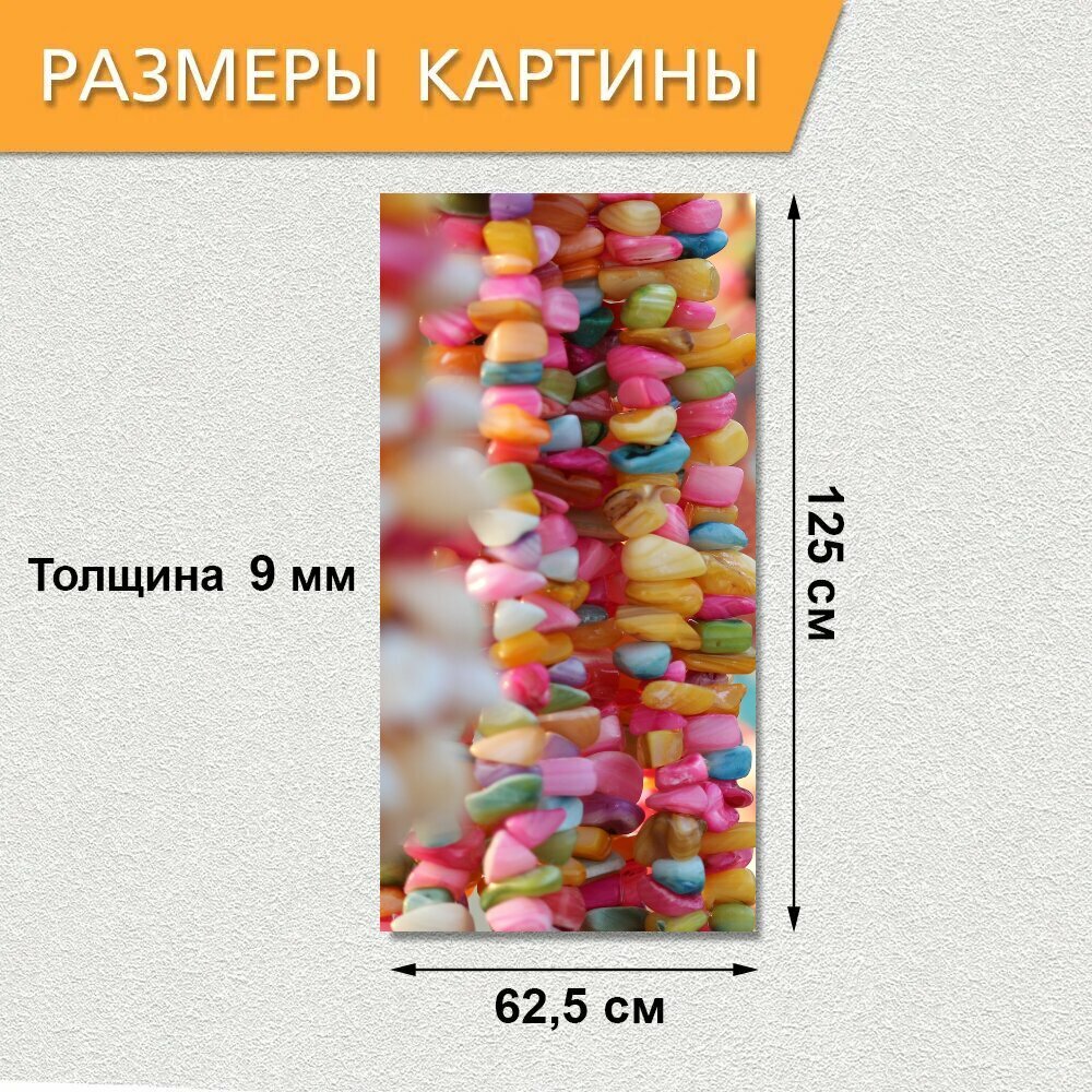 Вертикальная картина на ОСП "Цвет бусины, ювелирные изделия, бусы" 62x125 см. для интерьериа интересное: