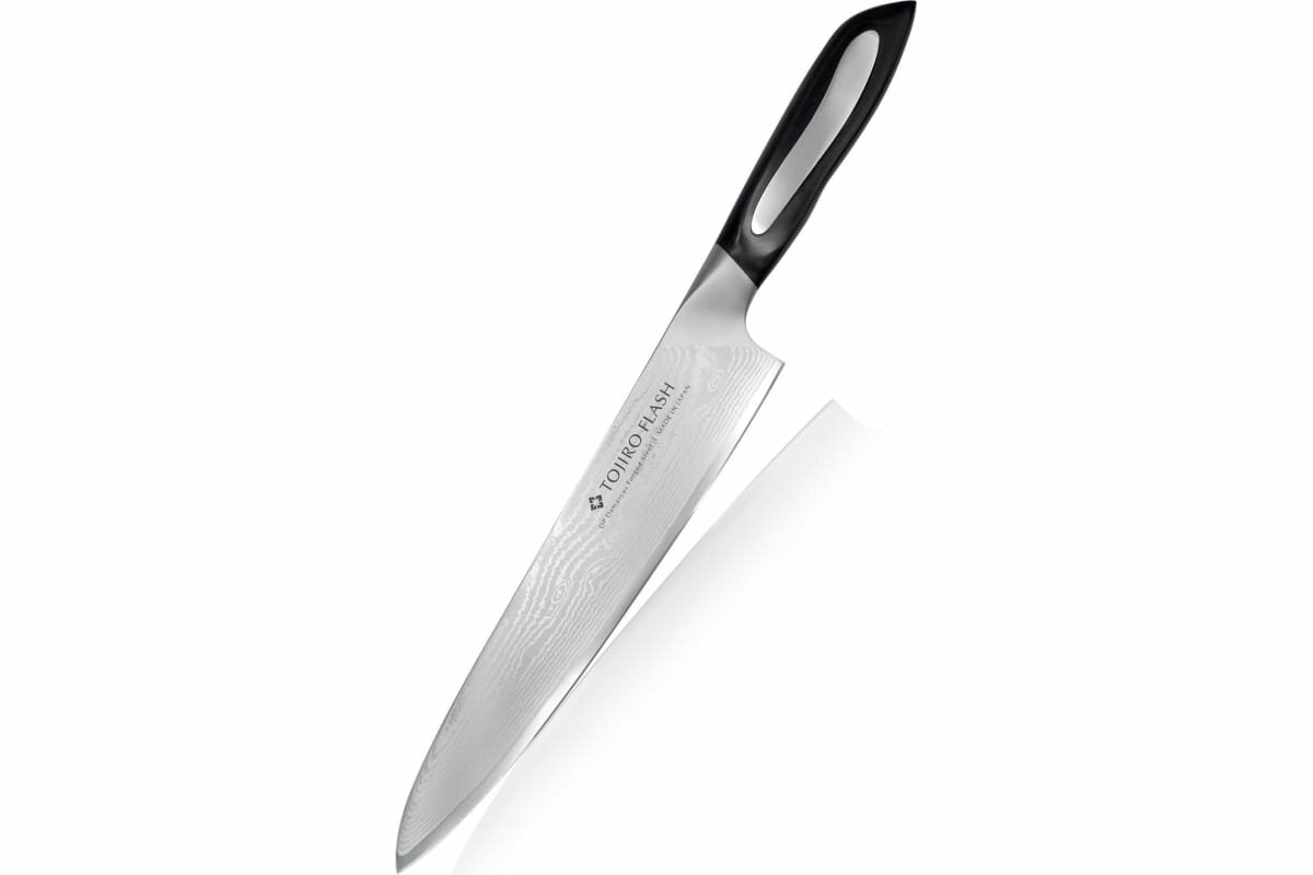 Tojiro Нож кухонный поварской flash длина лезвия 240 мм, сталь vg10, 63 слоя, рукоять микарта FF-CH2 . интересное:
