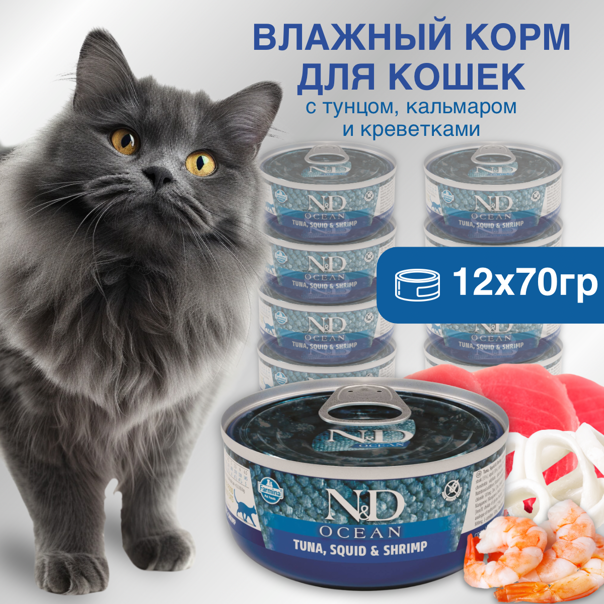 N&D для кошек оушен, тунец, кальмар и креветки