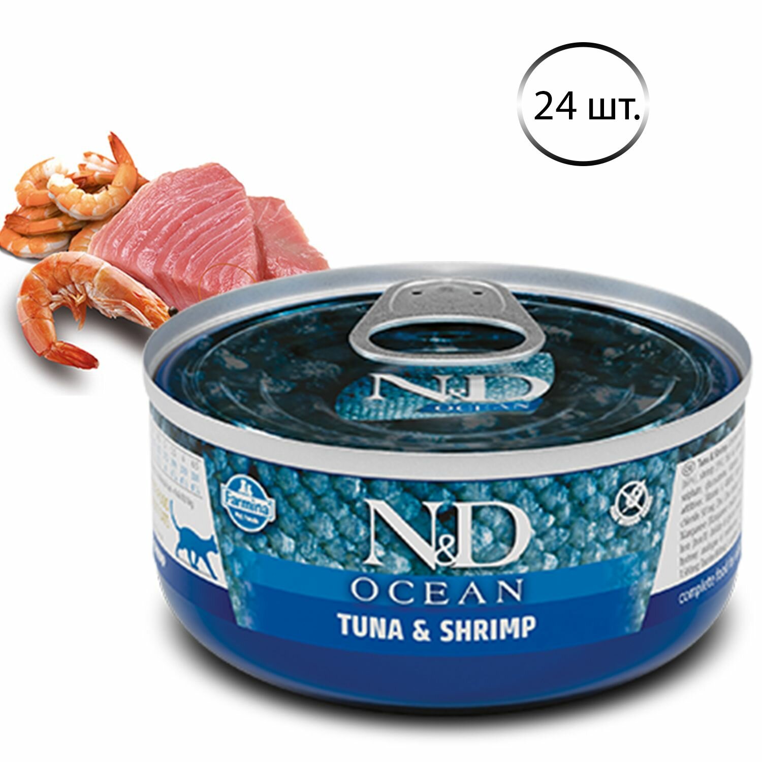Farmina N&D Cat Ocean Tuna & Shrimp влажный корм для взрослых кошек с тунцом и креветками - 70 г х 24 шт
