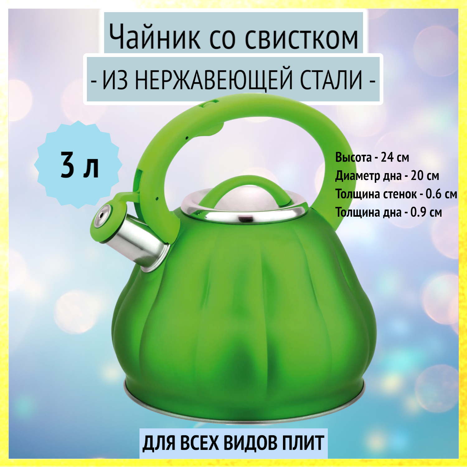 Чайник мет. со свистком BH - 9914 GREEN/3,0л/
