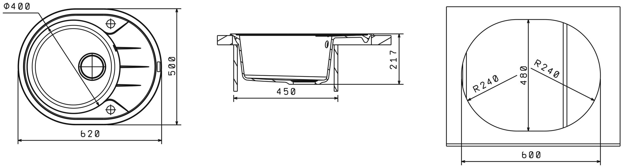Мойка кухонная округлая Флорентина Родос 620 Антрацит (20.245.B0620.302)