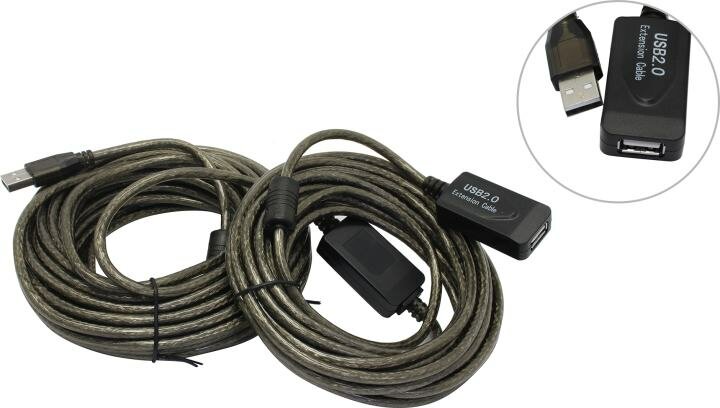 Кабель удлинитель активный(с усилителем) USB2.0-repeater, Am/af 15м Aopen(ACU823-15M)