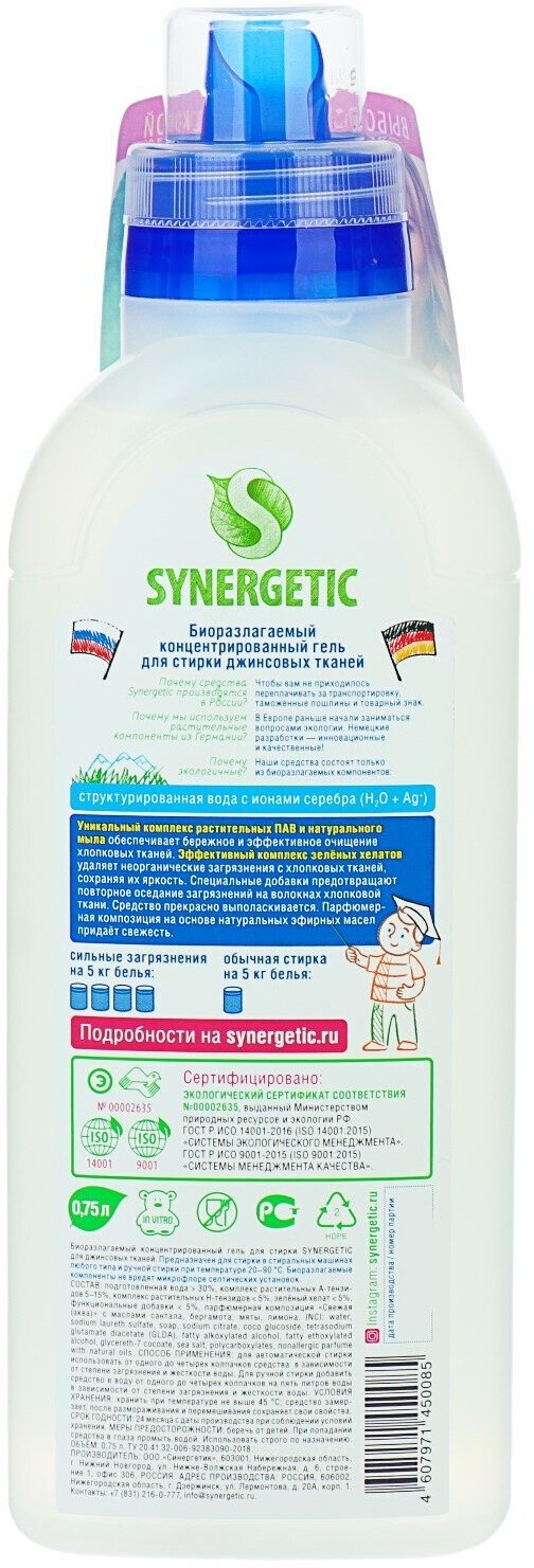 Гель Synergetic для джинсовых тканей, 0.75 л, бутылка, 2 шт
