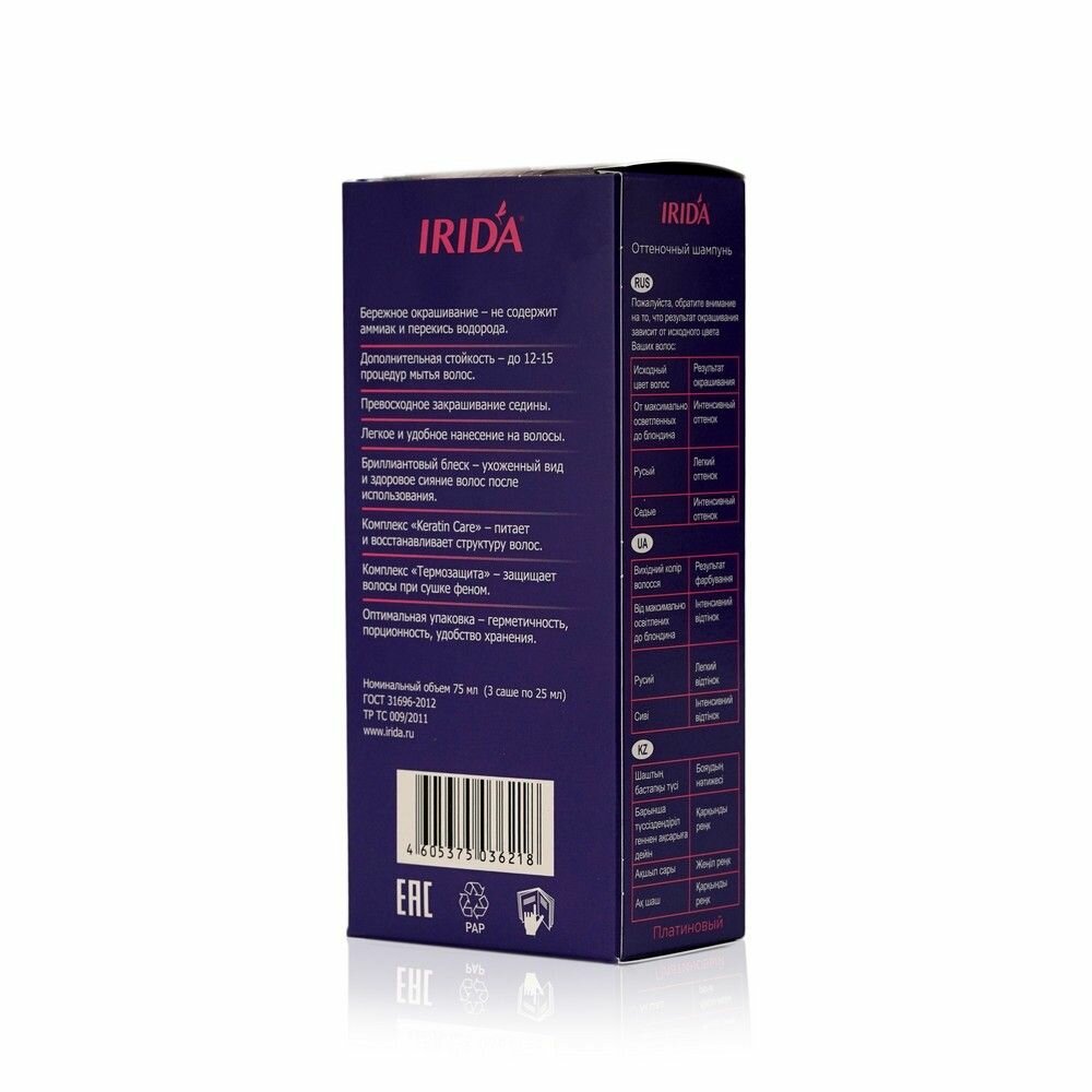 Купить IRIDA оттеночный шампунь Платиновый, 75 мл
