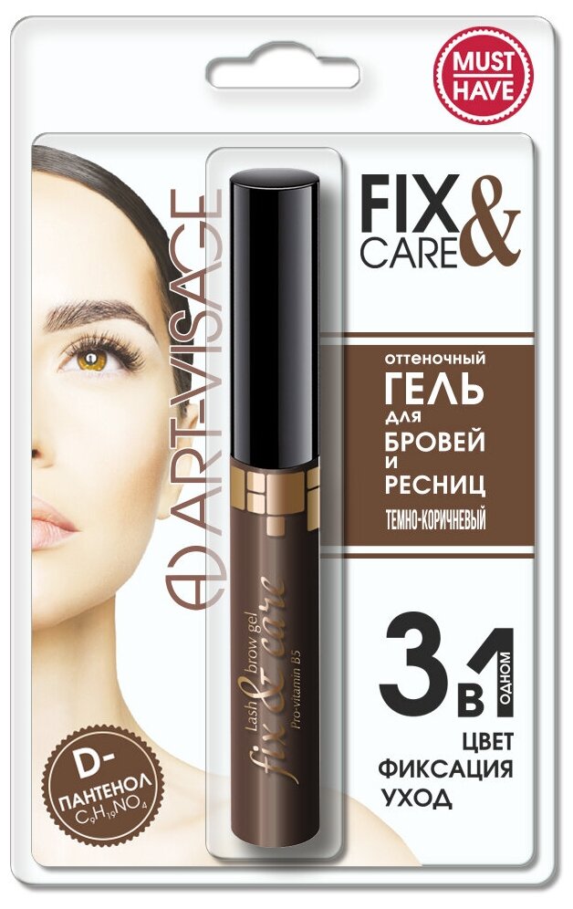 Купить ART-VISAGE Оттеночный гель для бровей и ресниц "FIX&CARE" в блистере темно-коричневый