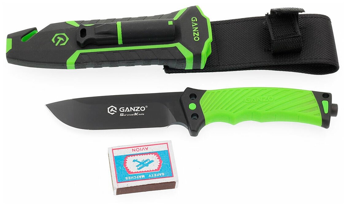 Нож выживания с огнивом Ganzo G8012, зелёный