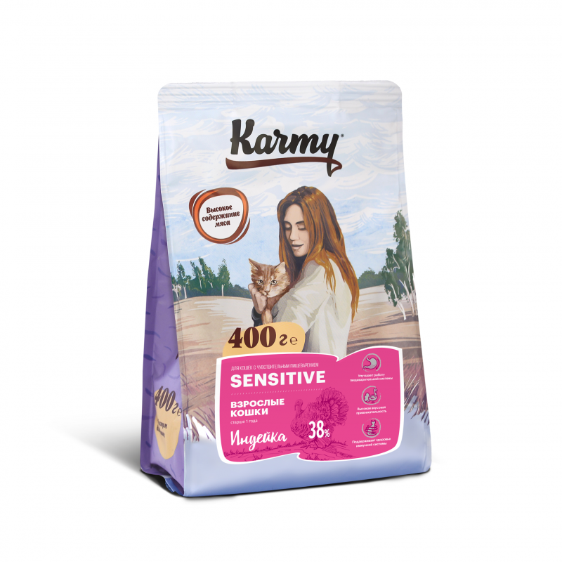 Karmy Sensitive Индейка корм для кошек с чувствительным пищеварением от 1 года, 0,4 кг