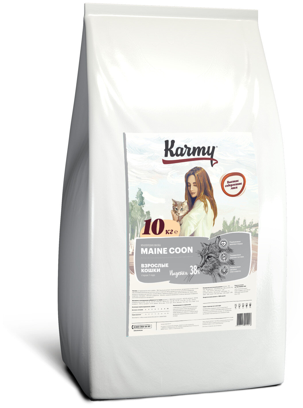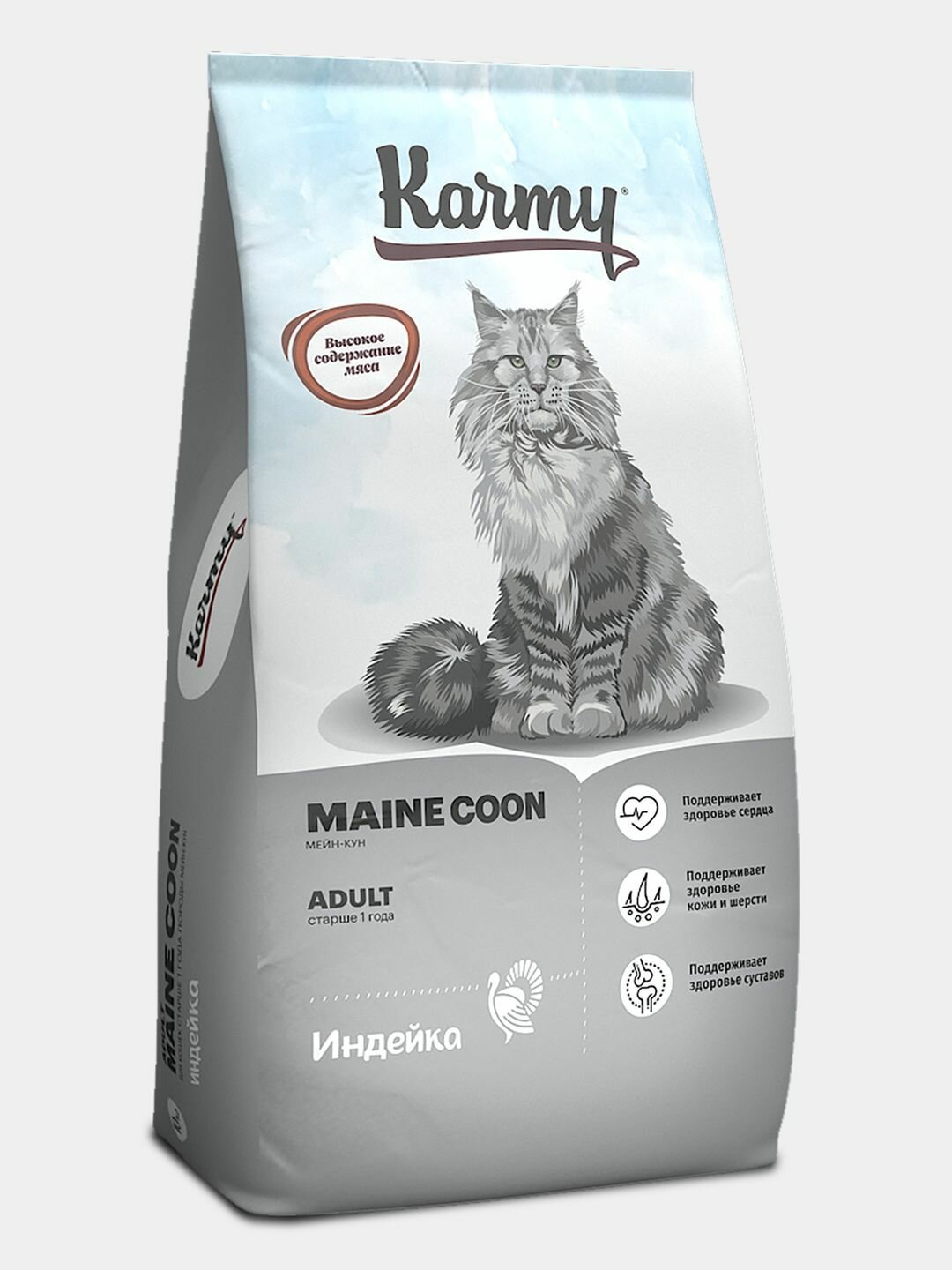 Купить Karmy Maine Coon сухой корм для взрослых кошек породы мейн кун с индейкой - 10 кг