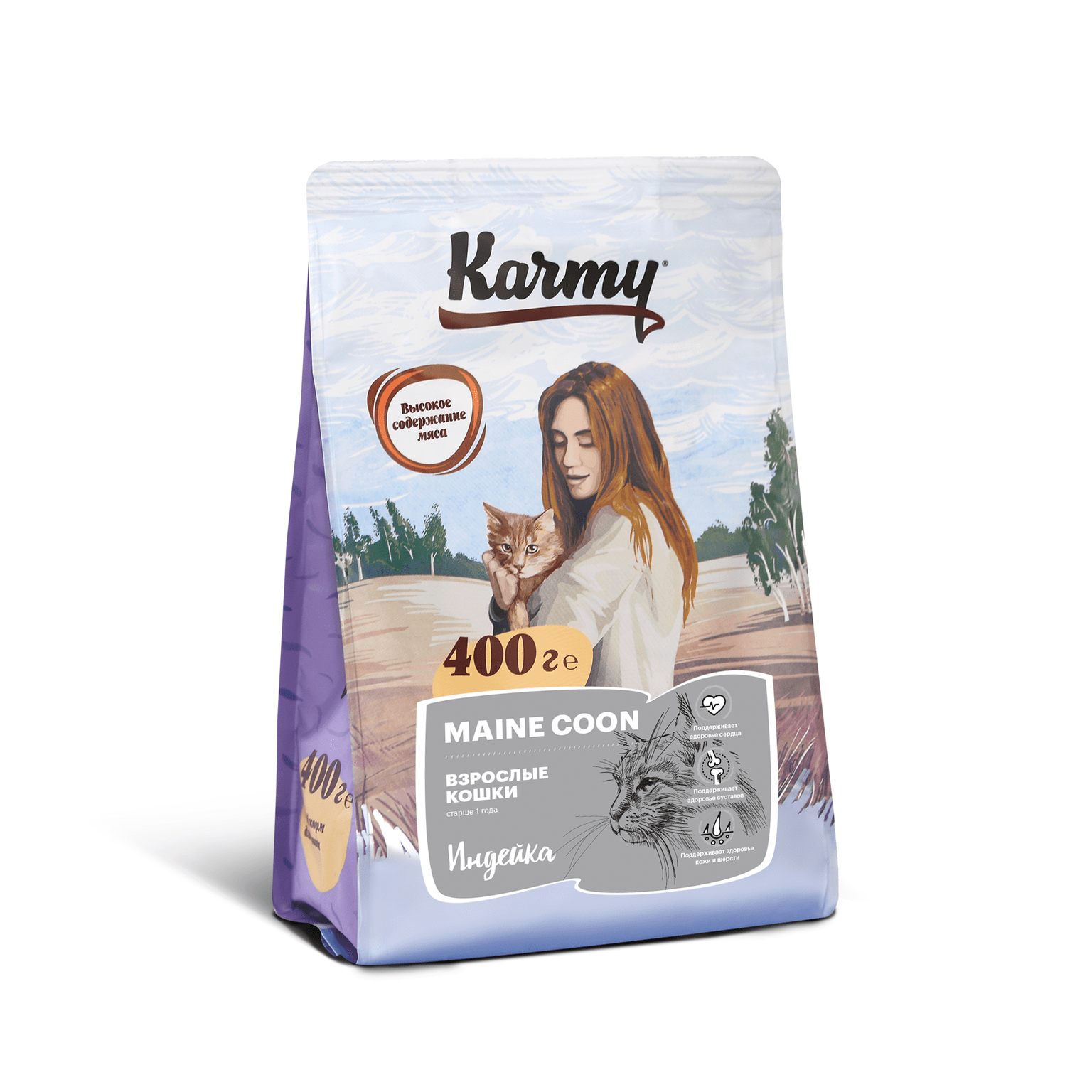 Сухой корм Karmy для кошек мейн-кун породы индейка maine coon adult turkey 400г