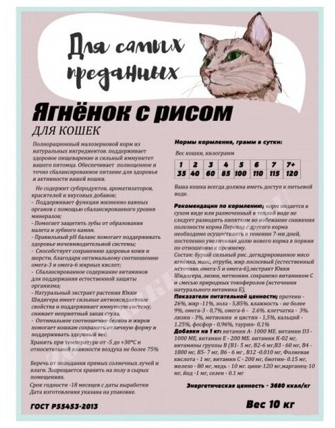 Для самых преданных, корм Д/кошек, ягненок С рисом, 10кг