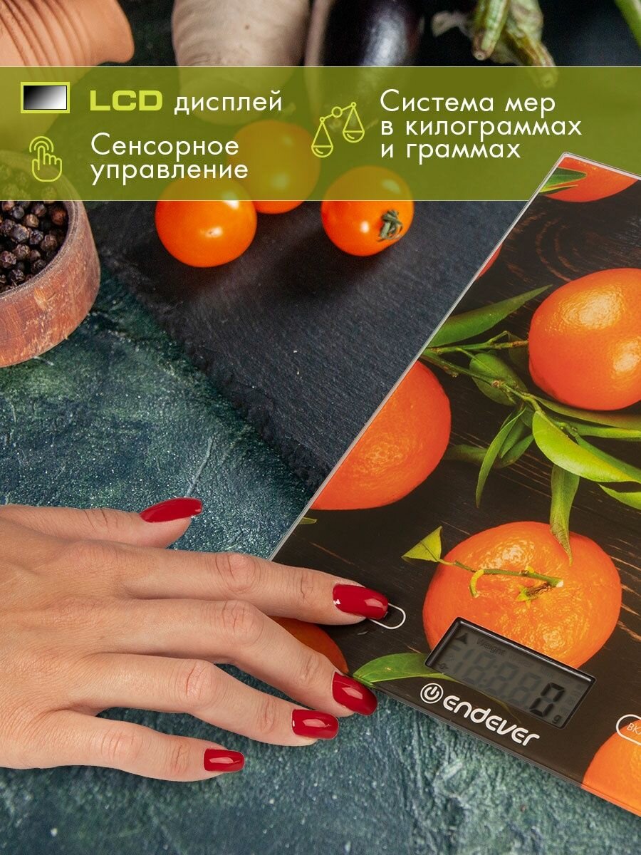 Весы кухонные электронные Endever Chief-504, рисунок апельсины / рисунок Апельсины / от 2г до 5кг