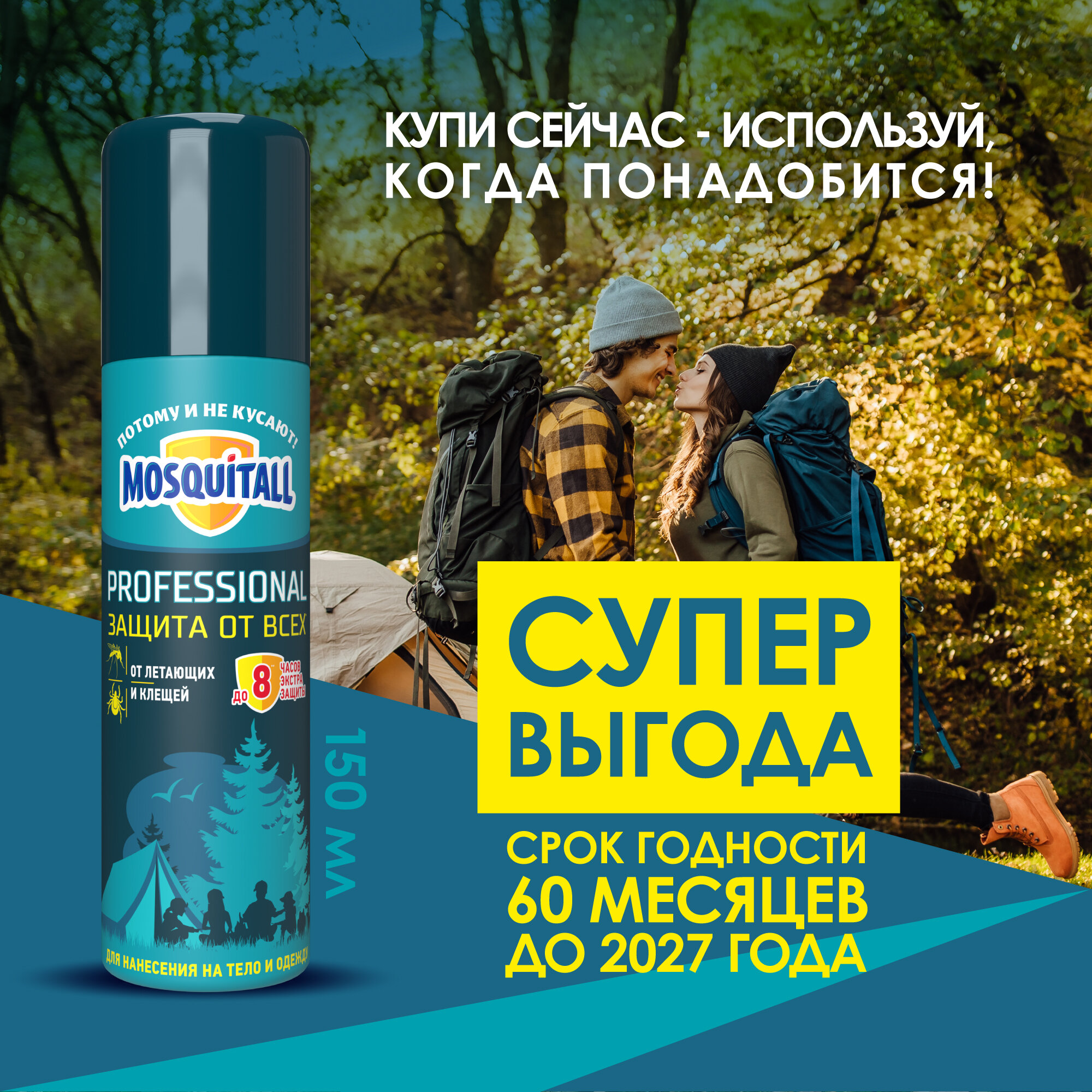 Mosquitall Профессиональная защита Аэрозоль репеллентный от всех насекомых 150 мл