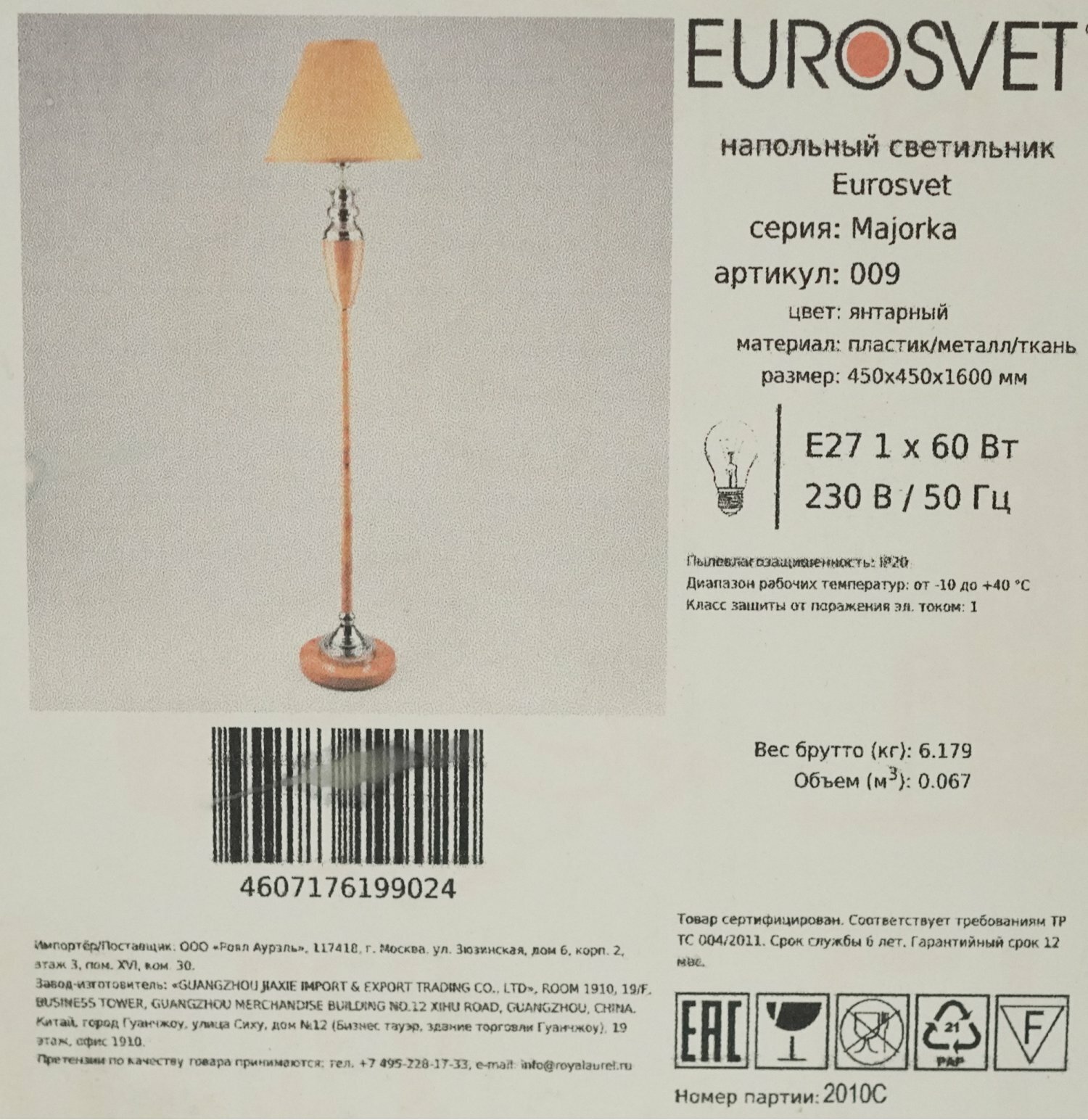 Eurosvet Торшер Eurosvet Majorka 009/1T RDM (янтарь)