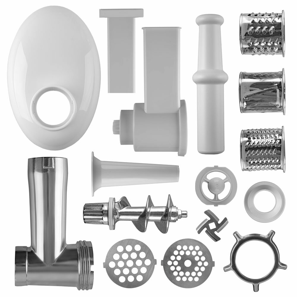 | Плюсы: | Многофункциональная, измельчает мясо в фарш, трёт овощи (насадки в комплекте) |