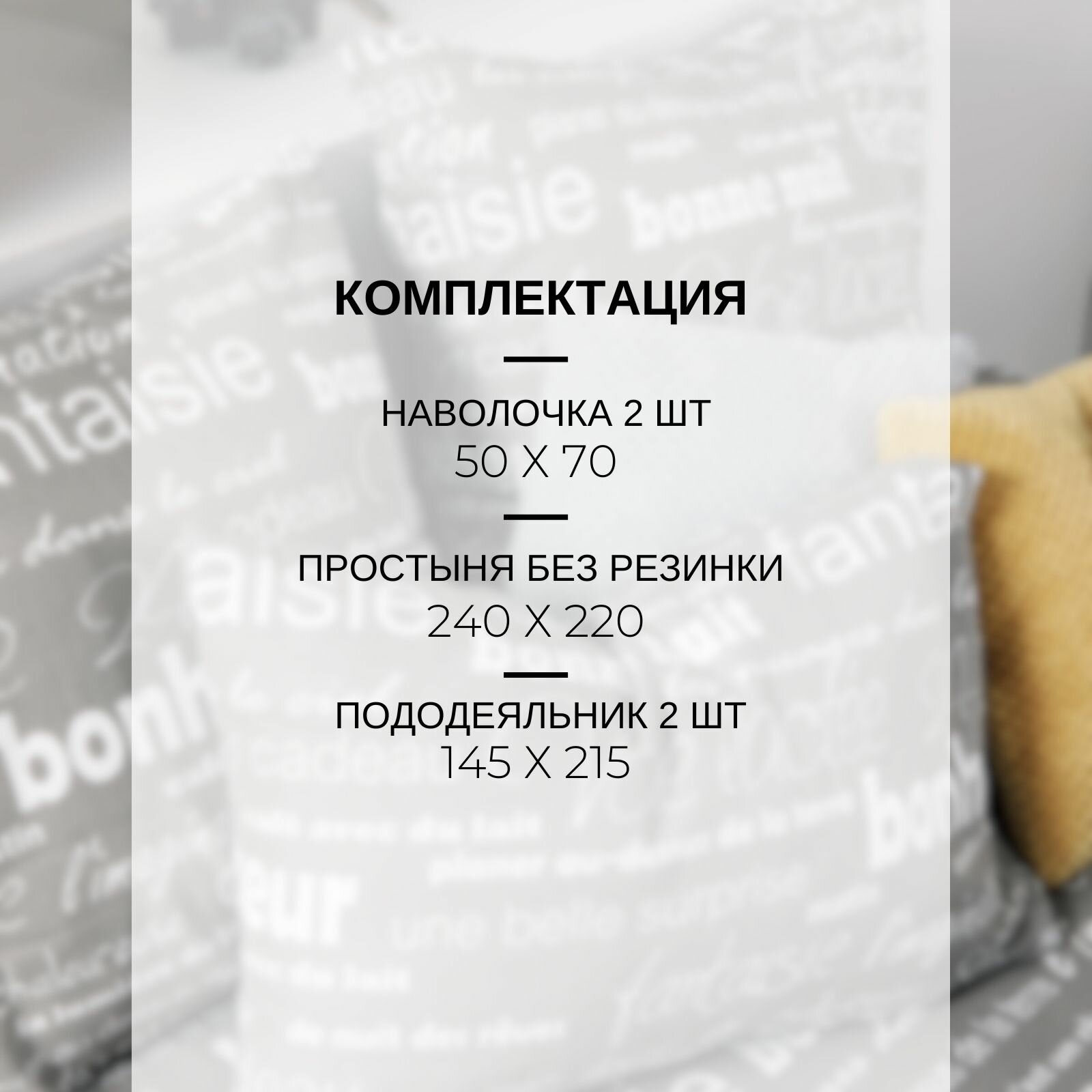 Комплект постельного белья Ночь Нежна Письма, 2-спальное с европростыней, бязь, серый