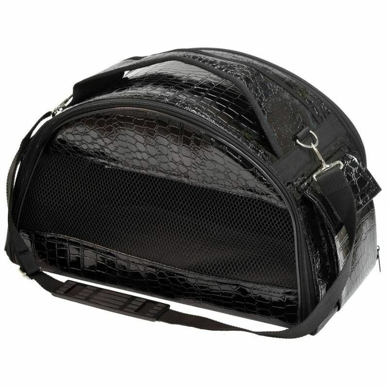 Купить 2249-1 Зооник Сумка-переноска средняя полукруглая из кожзама черная 420х230х250