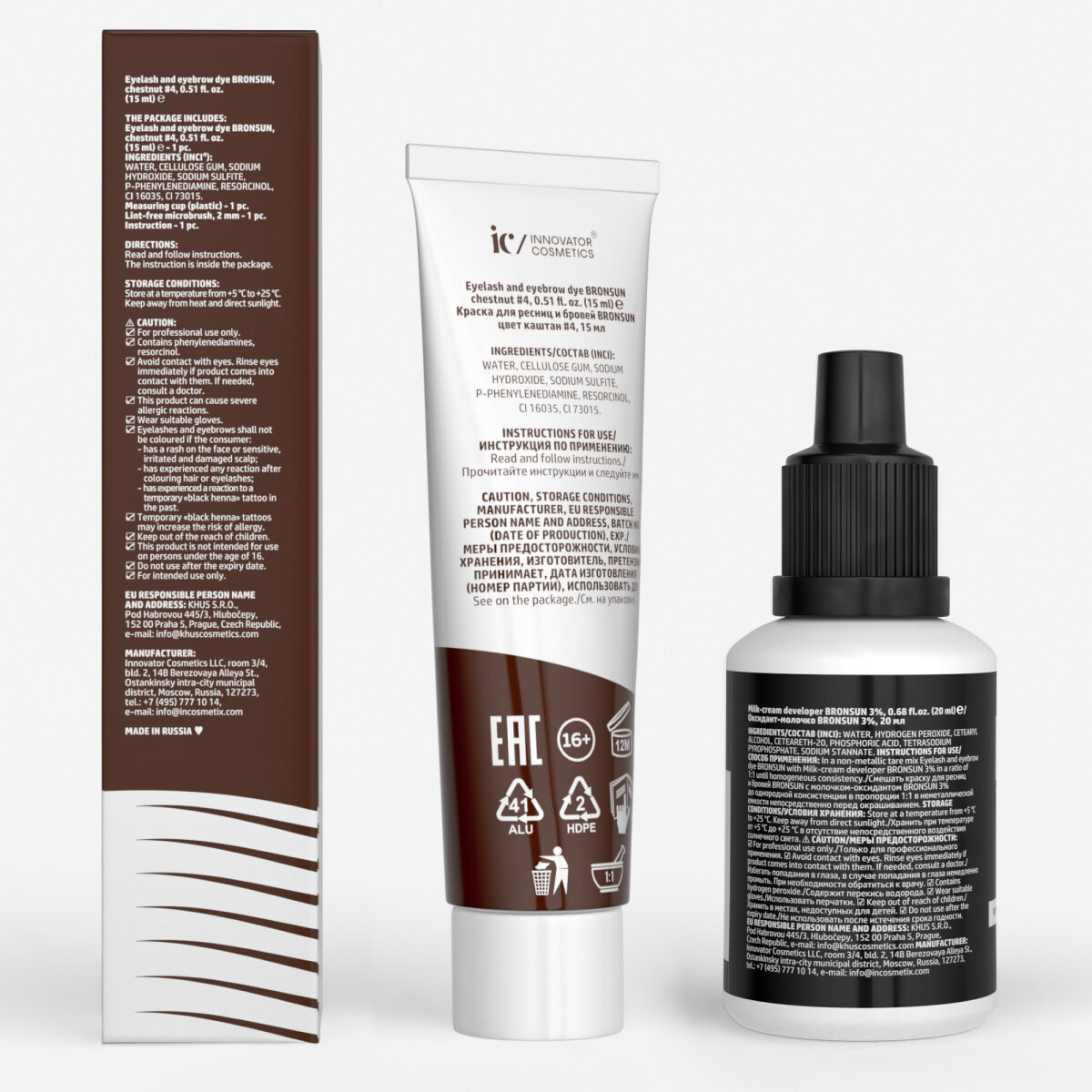 Краска Bronsun для ресниц и бровей, обновленная формула, тон 4 каштан, 15 мл