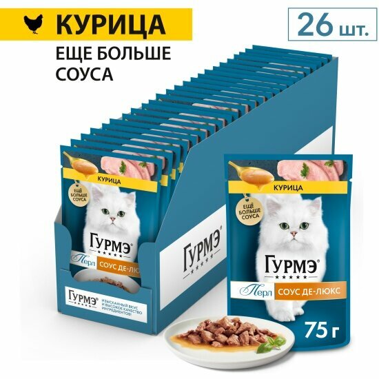 Влажный корм для кошек Гурмэ Перл соус де-люкс, с курицей 26 шт. х 75 г (кусочки в соусе)