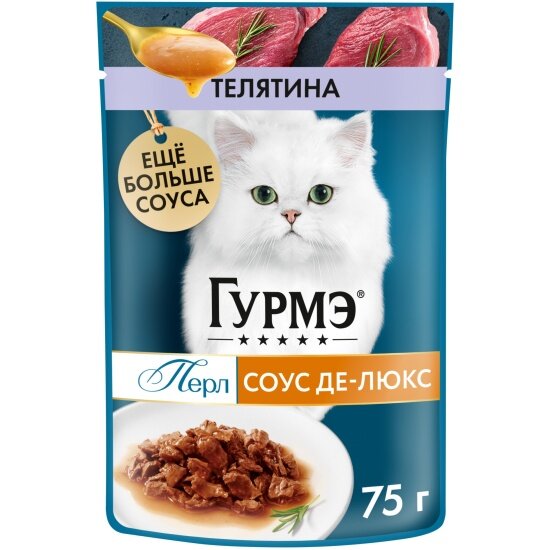 Gourmet Перл Соус Де-Люкс влажный корм для кошек, с телятиной в роскошном соусе, в паучах - 75 г х 26 шт