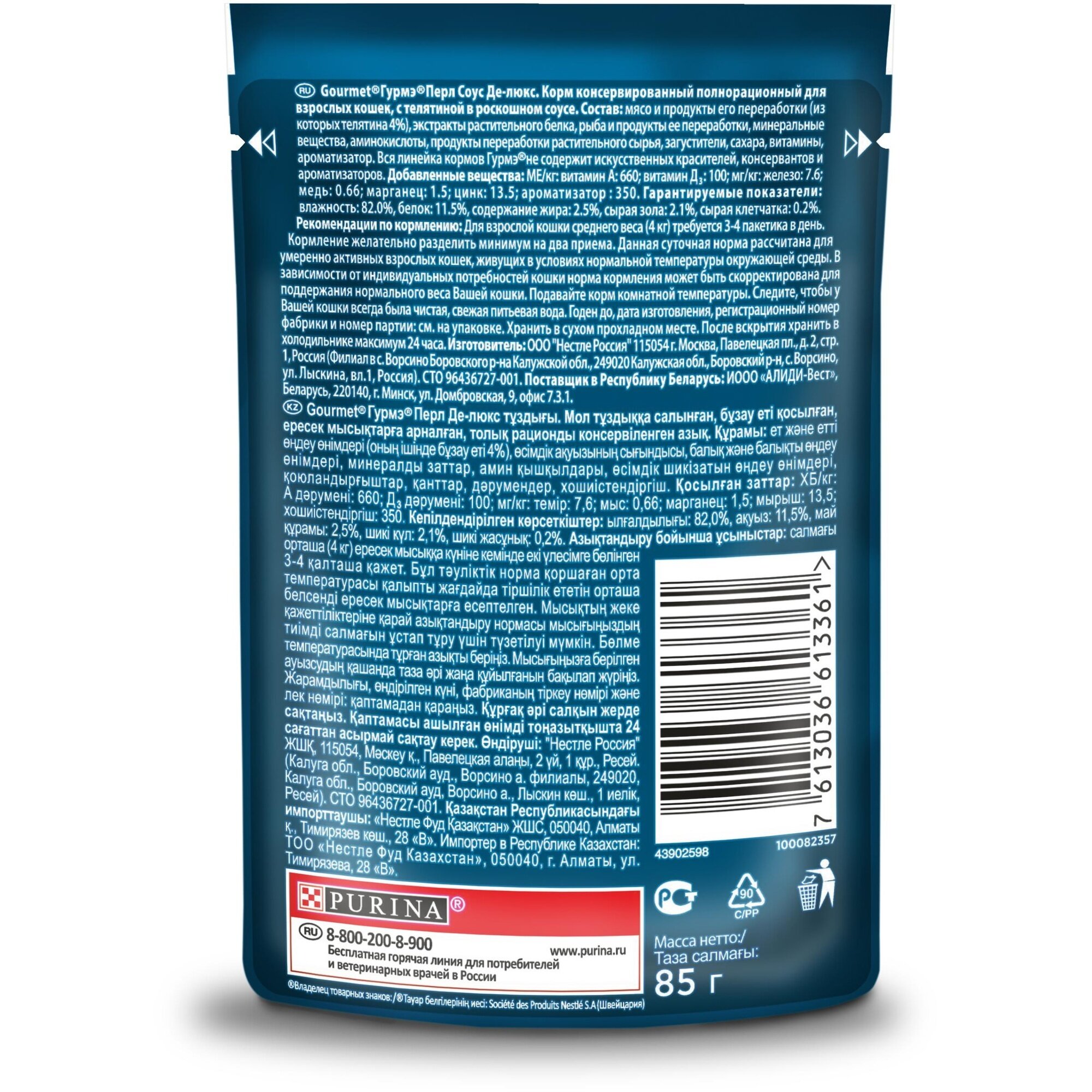 Влажный корм Паучи Пурина Гурмэ Перл Соус Де-люкс для взрослых кошек с телятиной (цена за упаковку) 75г х 26шт
