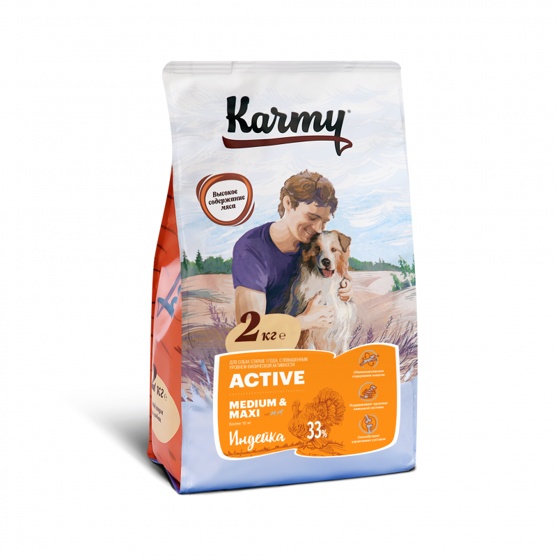KARMY ACTIVE MEDIUM & MAXI для активных взрослых собак средних и крупных пород с индейкой (2 + 2 кг)