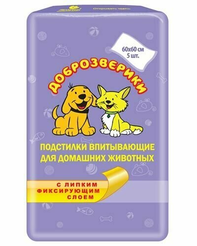 Купить Пелигрин Доброзверики Подстилки впитывающие с липким слоем 60*60см 5шт