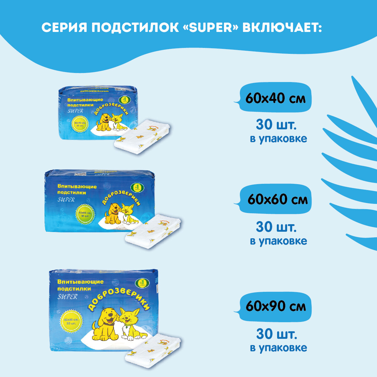 Пеленки для кошек и собак одноразовые Доброзверики Super 60x40 см./30 шт.