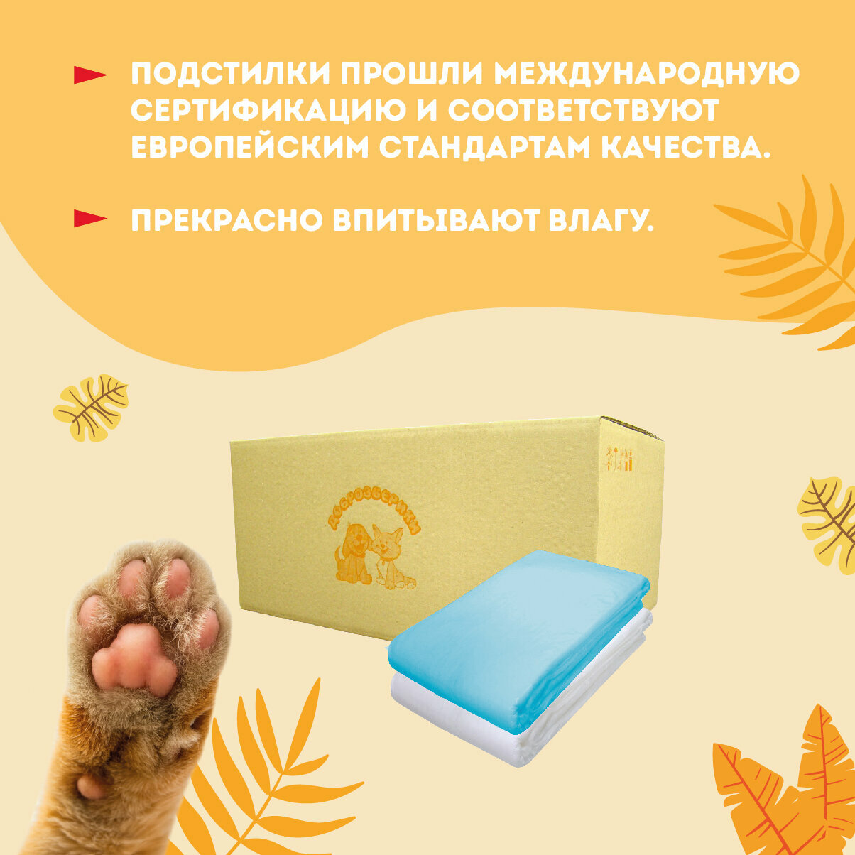 Доброзверики пеленки впитывающие для животных, 40 х 60 см (30 шт)