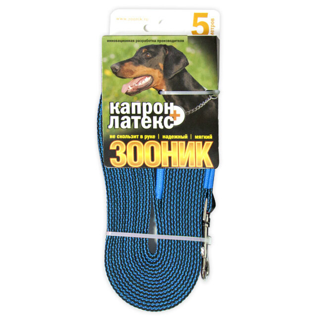 Купить 11436-3 Зооник Поводок капроновый с двойной латексной нитью 5м* 20мм, Синий 09*50