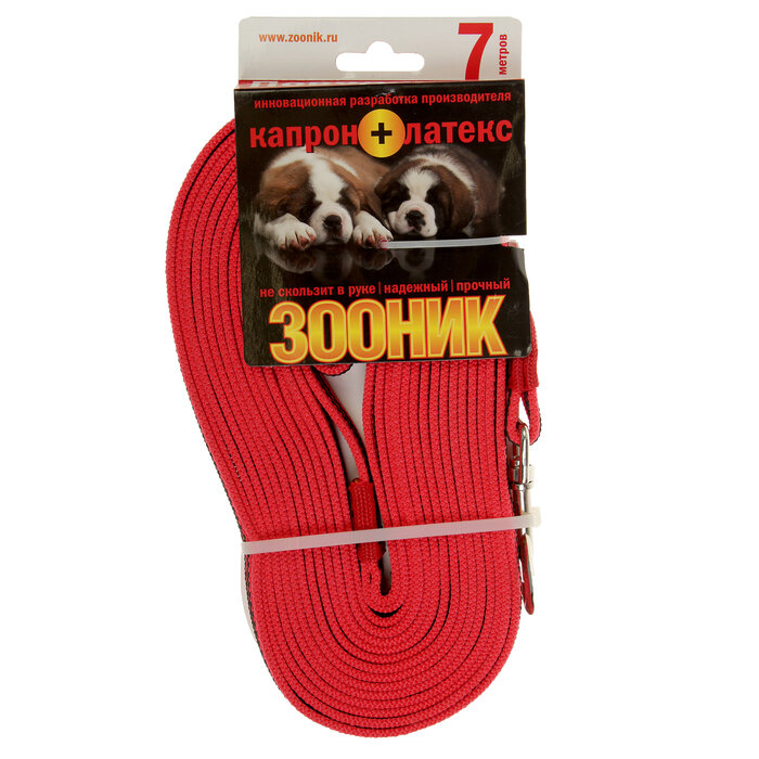 Поводок (Зооник) 3м*20мм, капрон с латексной нитью, красный