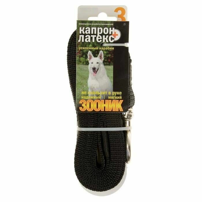 Купить Поводок (Зооник) 3м* 25мм, капрон с латексной нитью, с усиленным карабином, черный