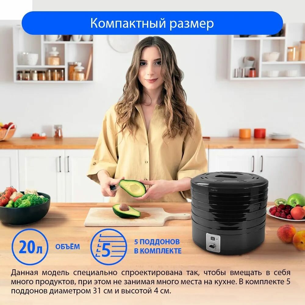 Купить MARTA MT-1953 5 поддонов черный жемчуг сушилка д/фруктов,овощей