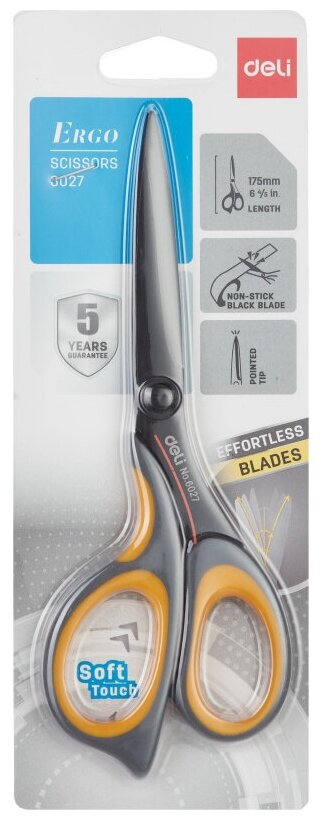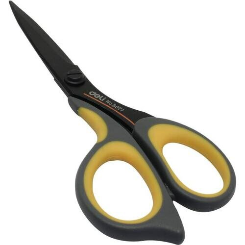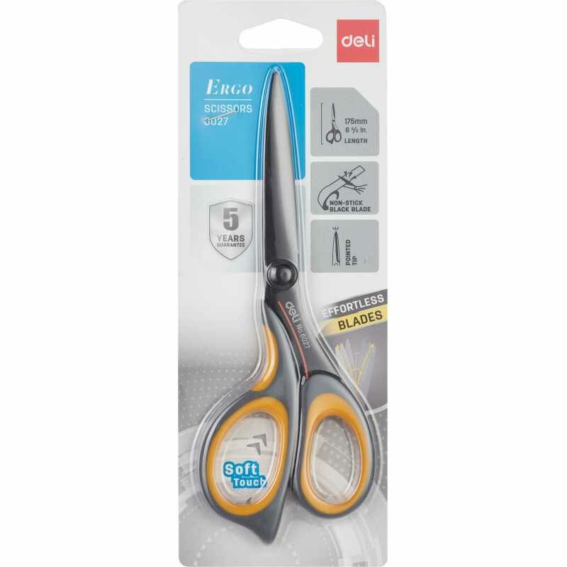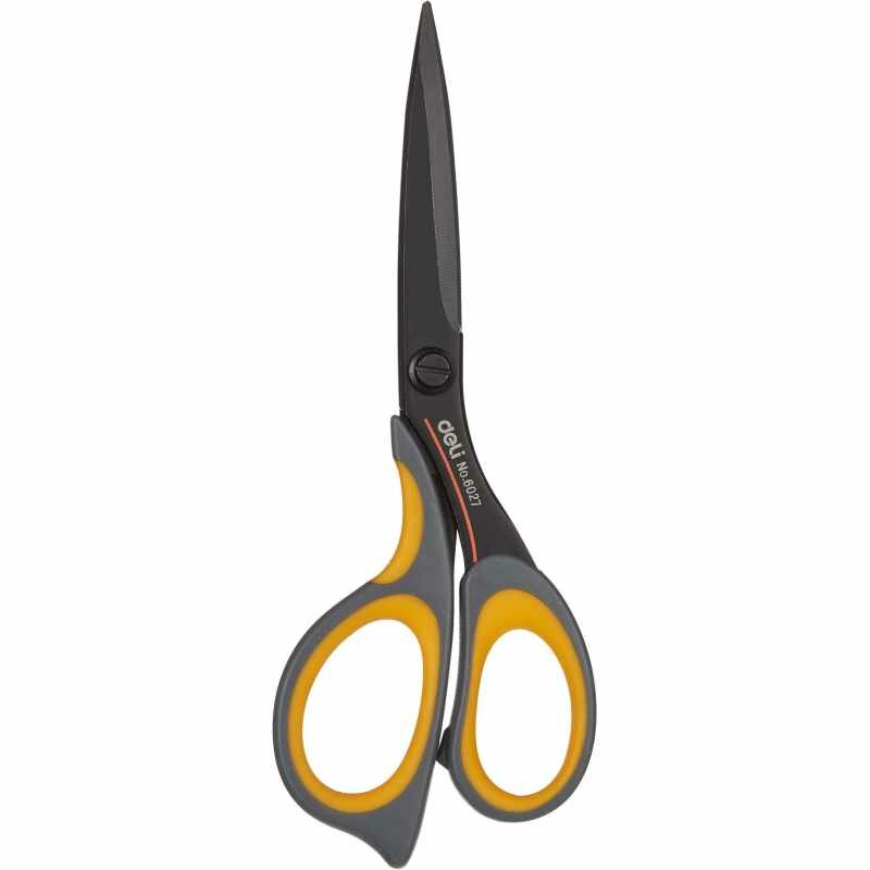 Ножницы Deli 175 мм, с пластиковыми прорезиненными ручками серого, желтого цвета (E6027)
