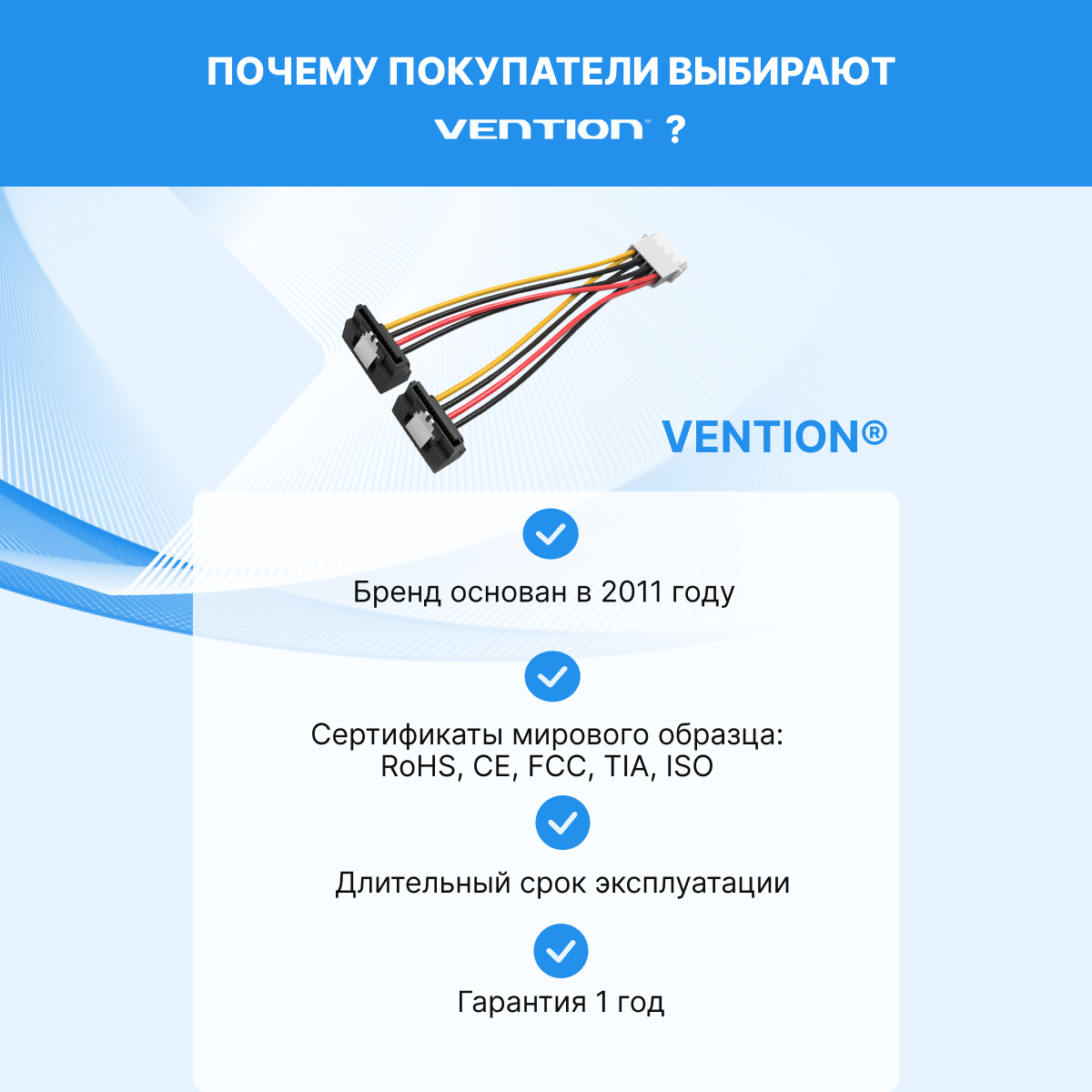 Vention (kdcbb) Переходник питания SATA-устройств (1big -)2sata, Г-образные) .