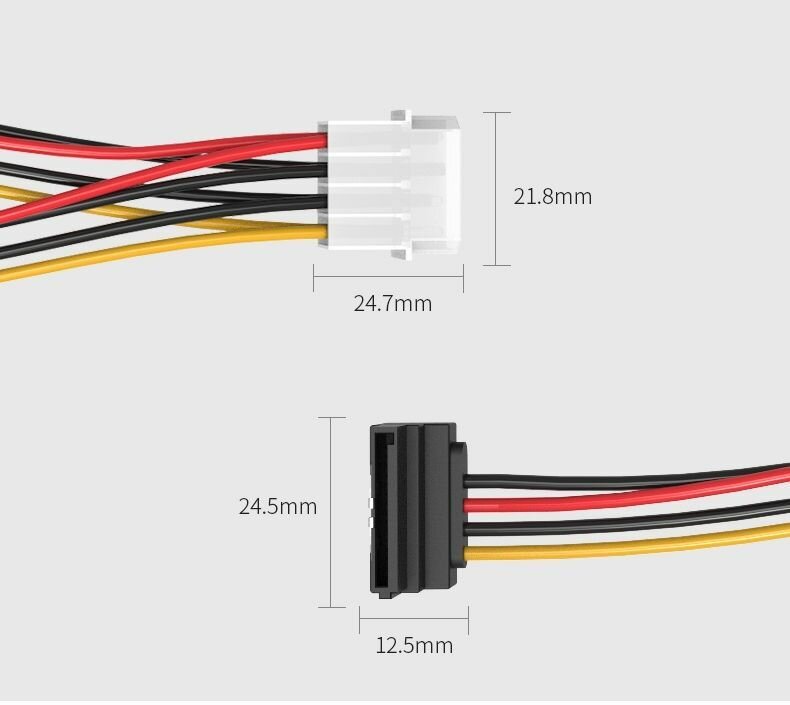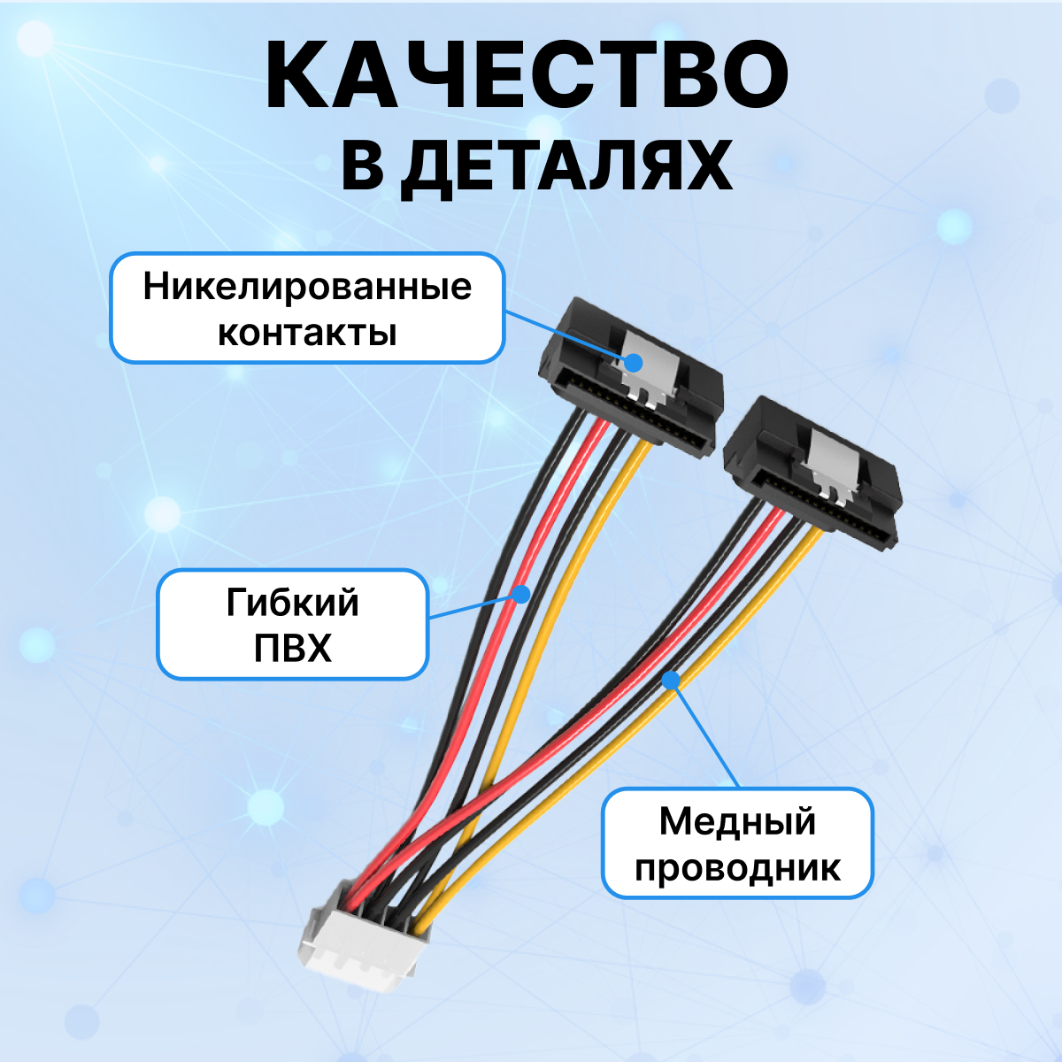 | Разъемы кабеля | Molex 4pin (m) - 2xSATA 15pin (f) |