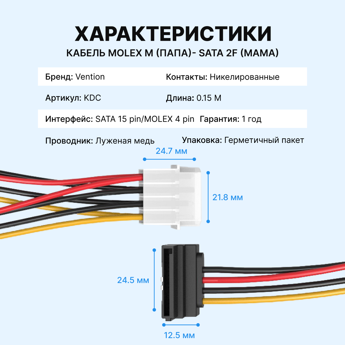 Кабель питания Molex - 2xSATA 0.15м Vention ( KDCBB )