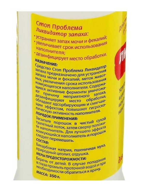 Ликвидатор запаха для кошачьих туалетов стоп проблема 350 г